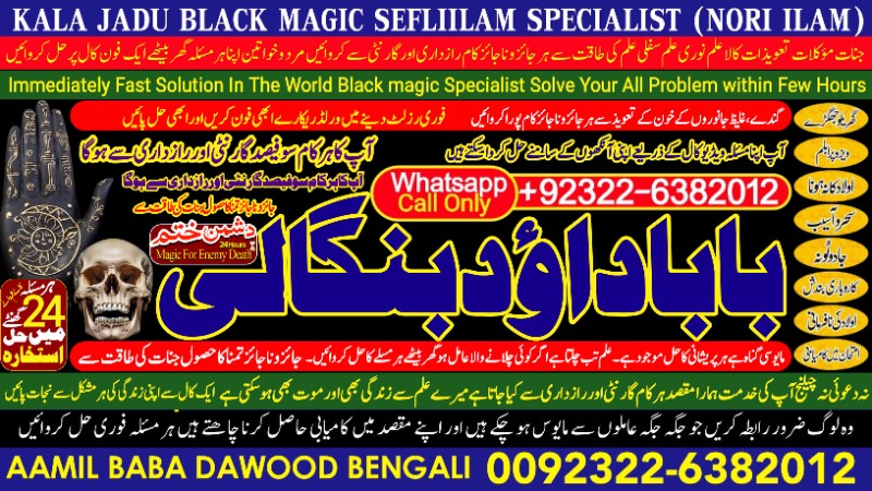 Amil Baba Dawood Bangali is a renowned and experienced spiritual healer specializing in powerful Rohani Ilaj, Kala Jadu removal, Sephi Ilam, Nori Ilam, and Voodoo spiritual practices. With decades of experience in ancient mystical sciences, he has helped thousands of people overcome love problems, marriage issues, business failures, enemy protection, and spiritual disturbances.