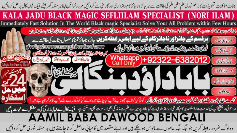 Amil Baba Dawood Bangali is a renowned spiritual healer and master of ancient mystical sciences, offering authentic solutions worldwide. With decades of experience, he specializes in Black Magic (Kala Jadu), Sephi Ilam, Nori Ilam, and Voodoo Spells, helping people overcome love problems, marriage issues, business challenges, enemy attacks, and spiritual disturbances.