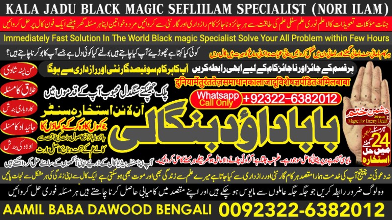 • Amil Baba Dawood Bangali is a renowned spiritual healer and master of ancient mystical sciences, offering authentic solutions worldwide. With decades of experience, he specializes in Black Magic (Kala Jadu), Sephi Ilam, Nori Ilam, and Voodoo Spells, helping people overcome love problems, marriage issues, business challenges, enemy attacks, and spiritual disturbances.