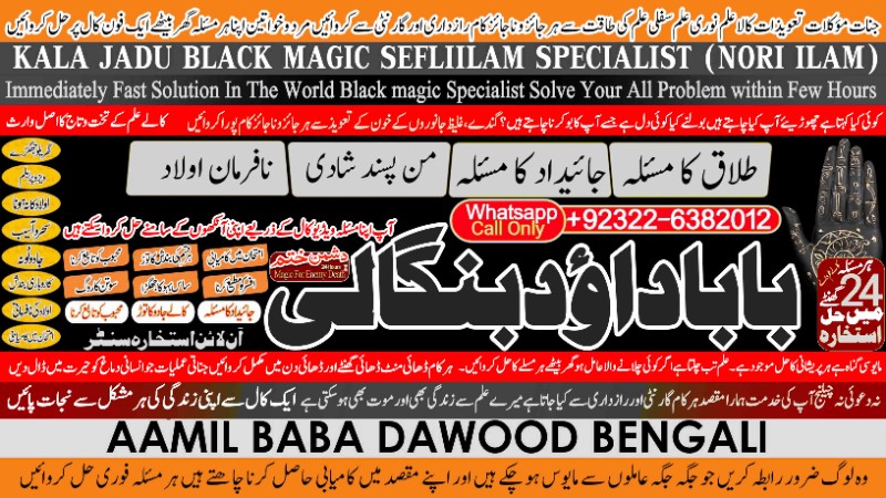• Amil Baba Dawood Bangali is a renowned spiritual healer and master of ancient mystical sciences, offering authentic solutions worldwide. With decades of experience, he specializes in Black Magic (Kala Jadu), Sephi Ilam, Nori Ilam, and Voodoo Spells, helping people overcome love problems, marriage issues, business challenges, enemy attacks, and spiritual disturbances.